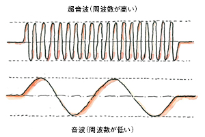 魚探では音波域の中の超音波を使用します。音波は人の耳で聞き取れますが、超音波は周波数が高くなるため聴取できません。また、超音波ではエネルギーを一定方向へ集中できるようになります。